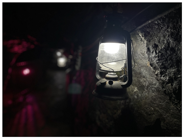 时光变换,今天的我们,轻松参观完矿洞和矿坑,在矿坑的对面买一杯咖啡,坐在椅子上晒太阳。旁边草坪上自动洒水器正在摇头晃脑的喷水,水珠折射着阳光,发出五颜六色的光芒。仿佛没有什么事情发生过。