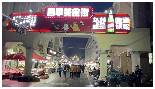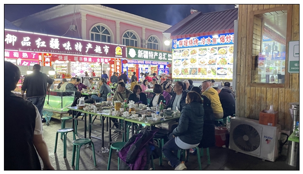 夜宿布尔津桦峰假日酒店。晚饭去阿凡提烤鱼,尝试本地烤冷水鱼,这家店在四季美食步行街。这里除了餐厅还有卖馕、卖水果和日用小百货的小店。热热闹闹。