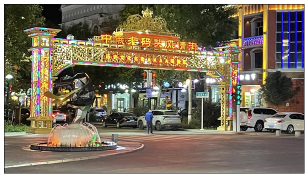 吃完饭又去了中俄风情街小逛,看了一眼夜晚的额尔齐斯河。回去的时候路过一个回民小超市,买了一个超大搪瓷盖杯,外面高温烧制民族花纹图案,很是好看。