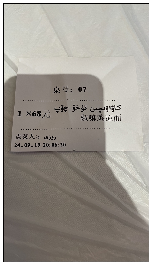 下午酒店休整。19点多去艾莱茵吃晚饭,这是一家维族特色的餐厅。进去之后发现,装修确实很民族特色,很好看。双语菜单,汉语和维语。有些服务员不太会讲普通话。跟着点评点菜,干煸拉面,椒麻鸡凉面,薄皮包子,小份烤羊腿。都是小份菜。而我们隔壁桌来了三个年轻人,就点了一份大盘鸡,那个盘,真的巨大。这也是这次没吃大盘鸡的原因,遗憾。吃完饭已经九点多,天完全黑了,回去休息,准备第二天的行程。