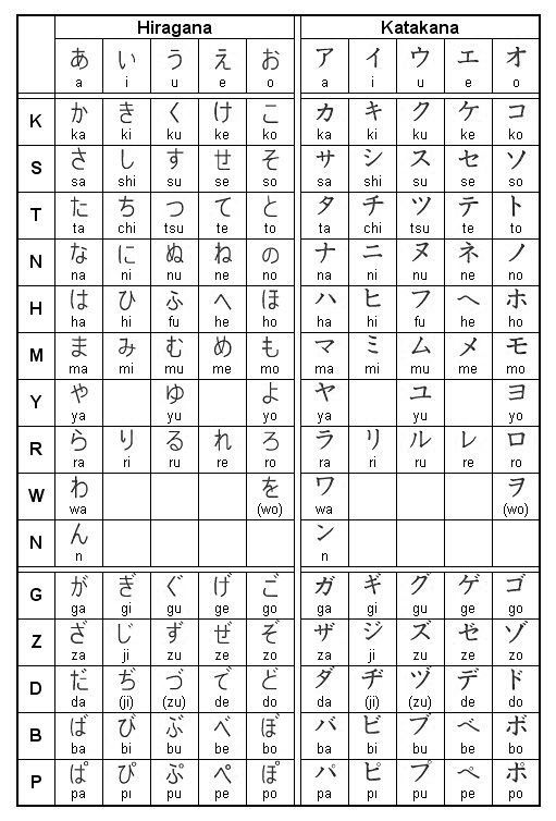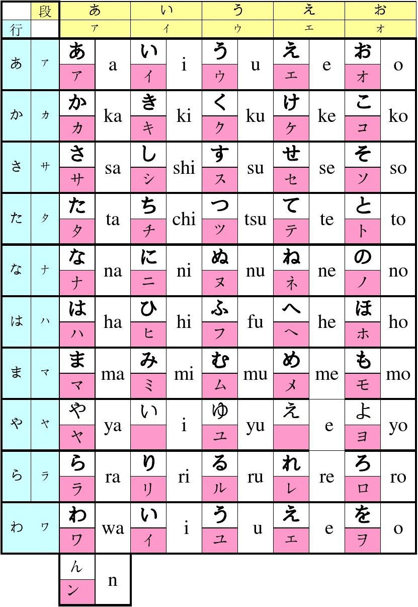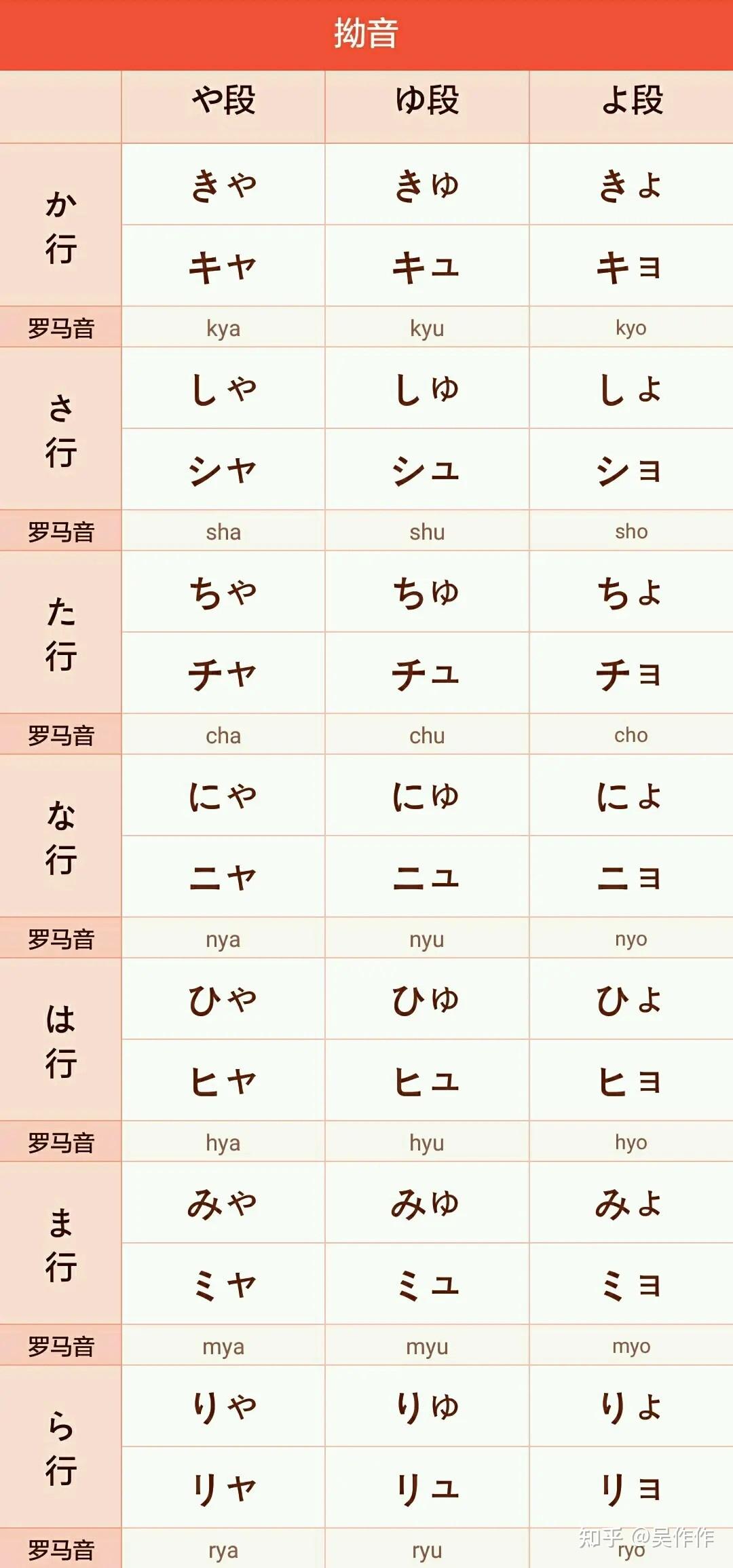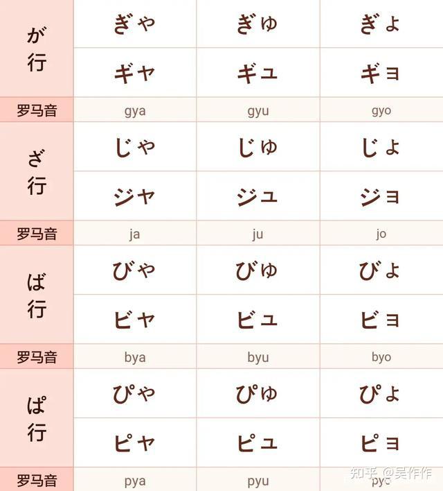 平假名 | 片假名 | 罗马音 | 备注 |