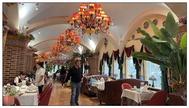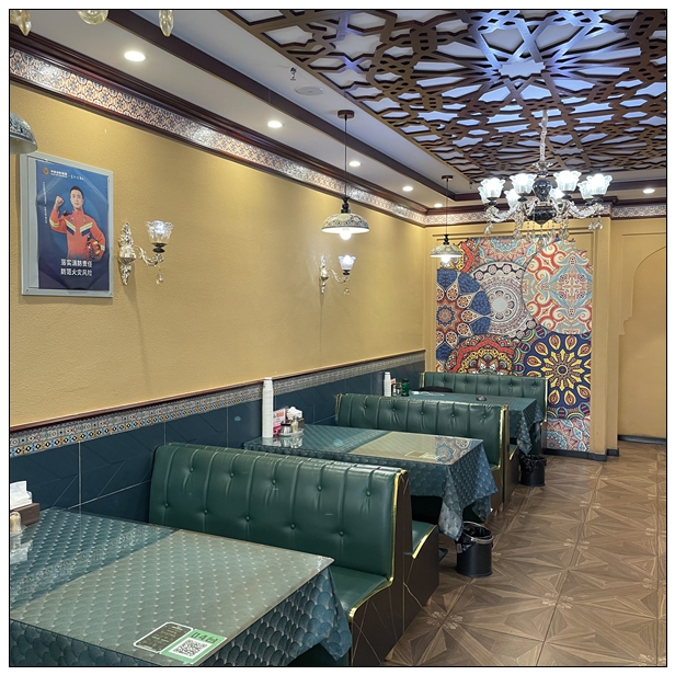 下午酒店休整。19点多去艾莱茵吃晚饭,这是一家维族特色的餐厅。进去之后发现,装修确实很民族特色,很好看。双语菜单,汉语和维语。有些服务员不太会讲普通话。跟着点评点菜,干煸拉面,椒麻鸡凉面,薄皮包子,小份烤羊腿。都是小份菜。而我们隔壁桌来了三个年轻人,就点了一份大盘鸡,那个盘,真的巨大。这也是这次没吃大盘鸡的原因,遗憾。吃完饭已经九点多,天完全黑了,回去休息,准备第二天的行程。