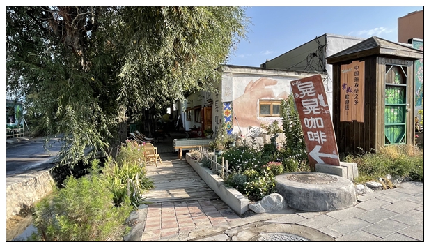 早上起床,又到平台上看风景。很惊奇的发现视频里贺老师的民宿就开在马路对面。平台风景很开阔,远处的山,近处的玉米地,还有想象中的薰衣草田,晃晃村实际以种植薰衣草出名,由此带动了薰衣草相关的观光。平台上能看到村里各处都在大兴土木。各种风格的小院。